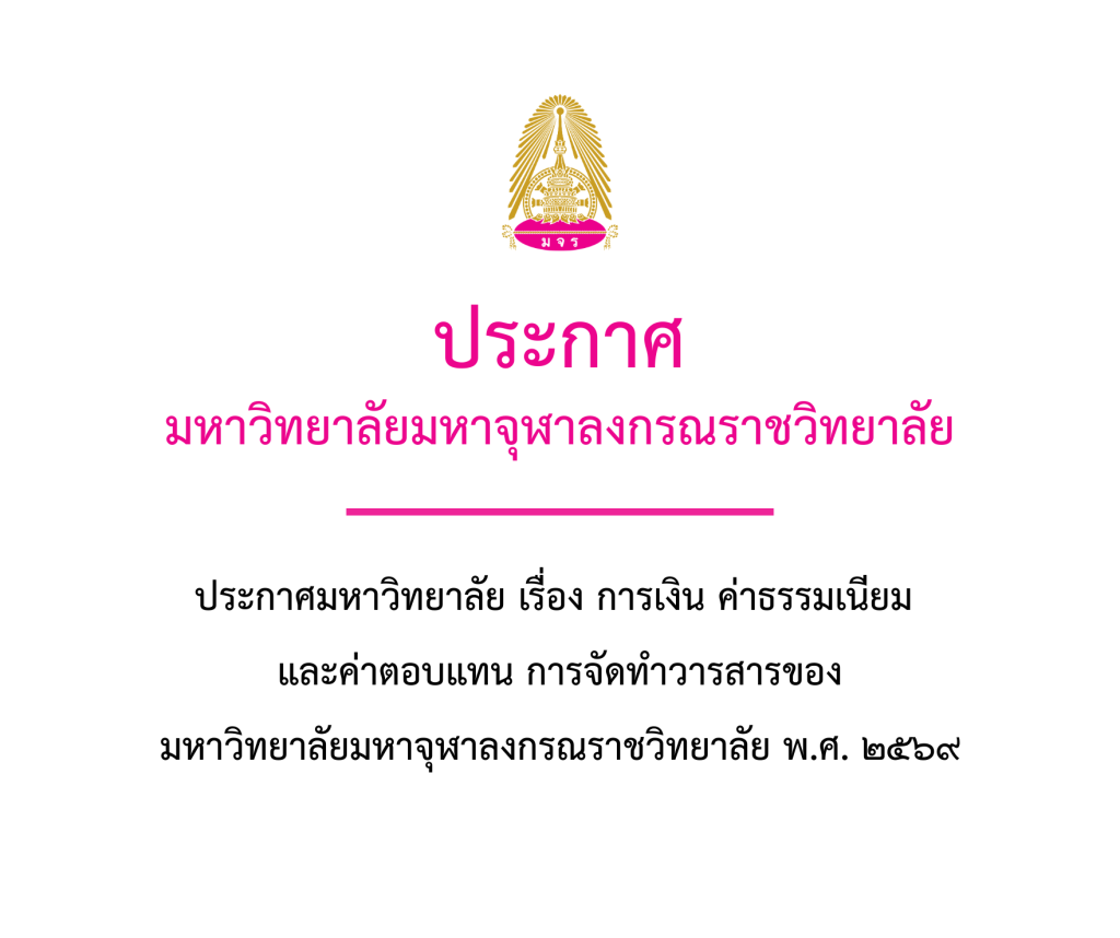 ประกาศมหาวิทยาลัย เรื่อง การเงิน ค่าธรรมเนียม และค่าตอบแทน การจัดทำวารสารของมหาวิทยาลัยมหาจุฬาลงกรณราชวิทยาลัย พ.ศ. ๒๕๖๙